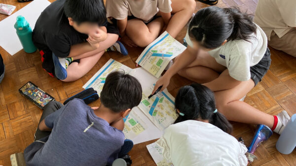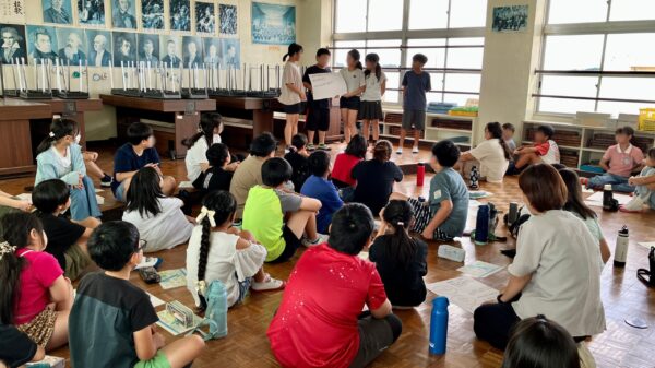 児童の皆さんは少し緊張した面持ちで前半の講義を受けていましたが、後半のワークショップでグループワークをするうちに緊張が解けた様子で、お互いのワークシートを見比べながら活発な意見交換を行い、どのグループも最終的には考えを一つにまとめることができました。