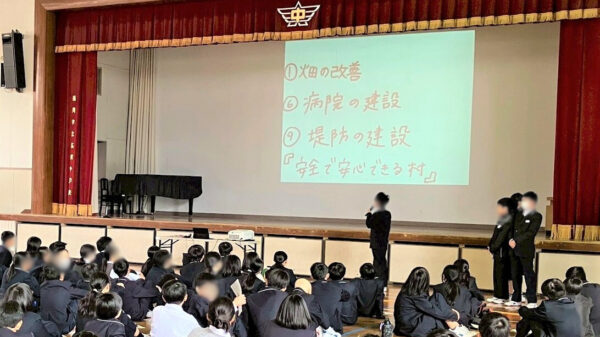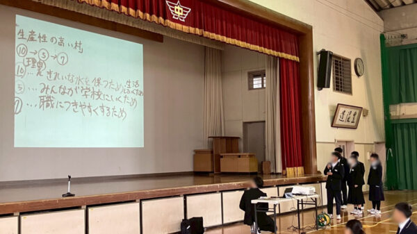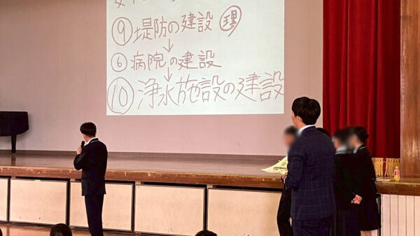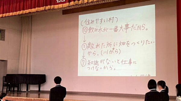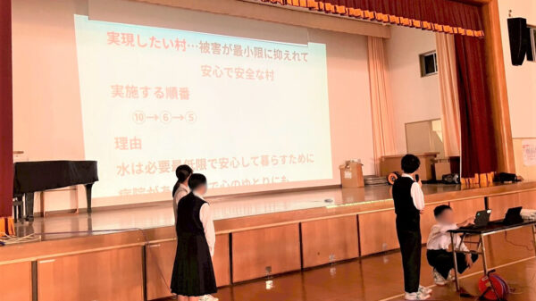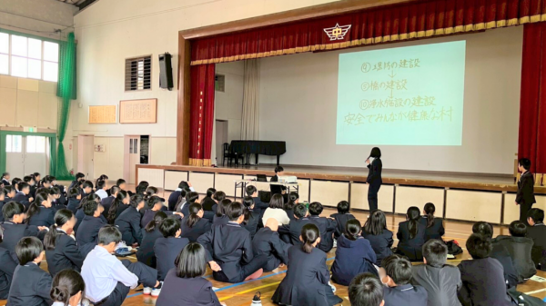 今年から実施対象を中学校まで拡大し、希望された学校では講義の後に「村の復興をみんなで考えよう」というテーマでワークショップを実施しました。